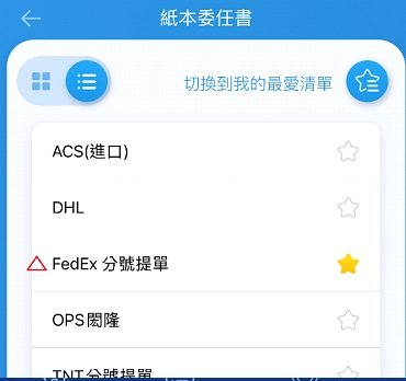 選擇你的報關行,像這次是Fedex.然後把裡面的資料都填上,如果之前填過就會自動帶出.