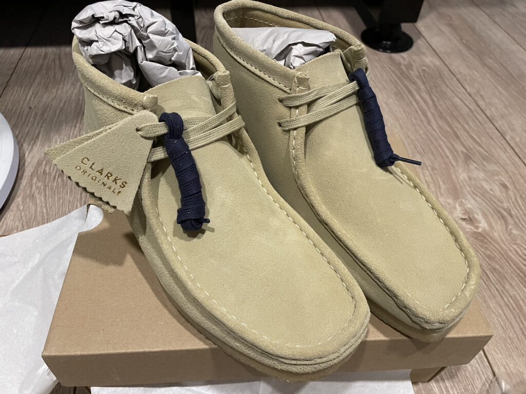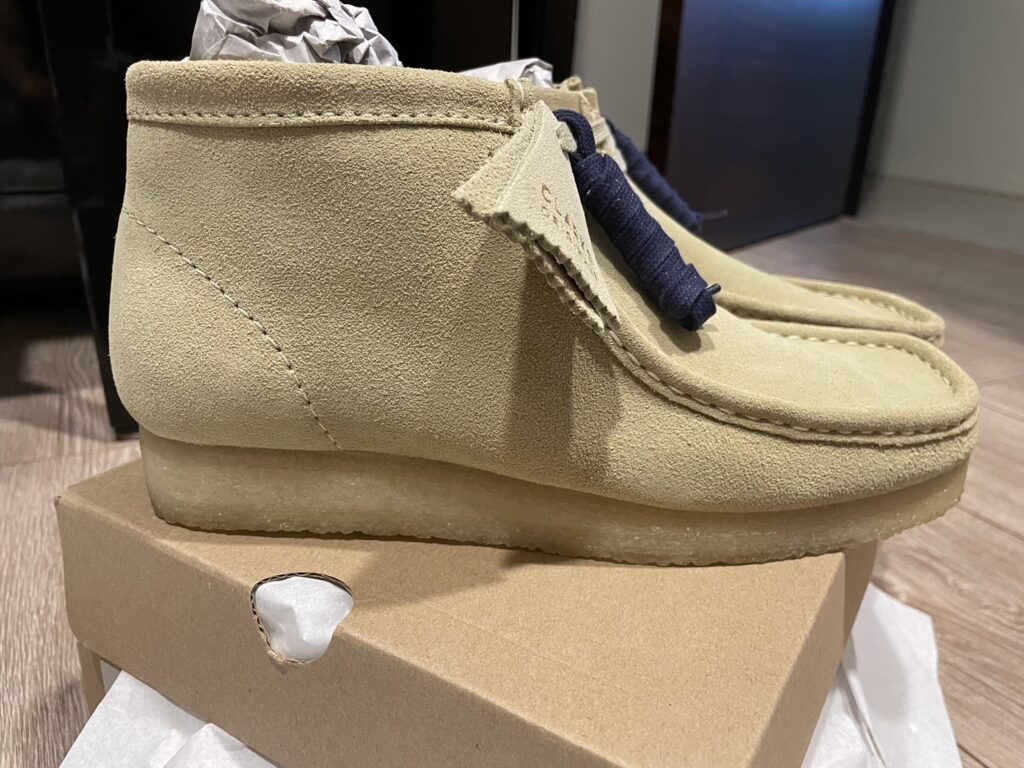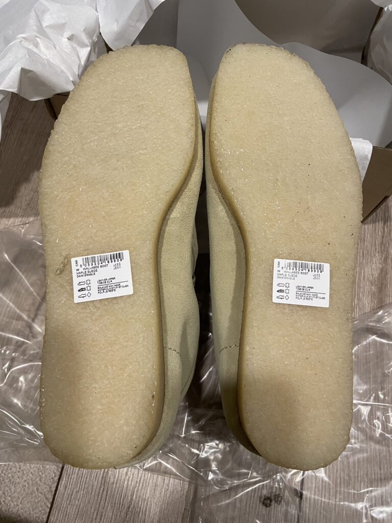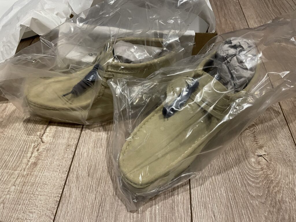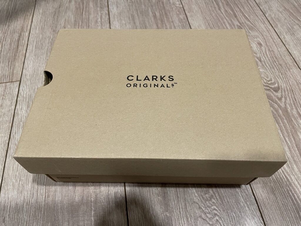 打開後裡面就是這次購買的Clarks-Wallabee鞋盒,可以注意到最上方有個雙面膠是退貨用的.