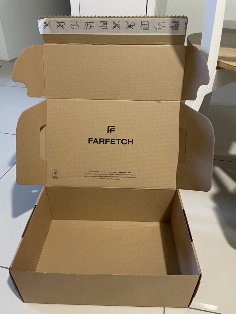 接下來就來開箱吧,首先會先有Farfetch自己的外盒加上一些國外郵寄的資料貼在外箱,一次性拆開建議都要錄影比較沒有爭議.