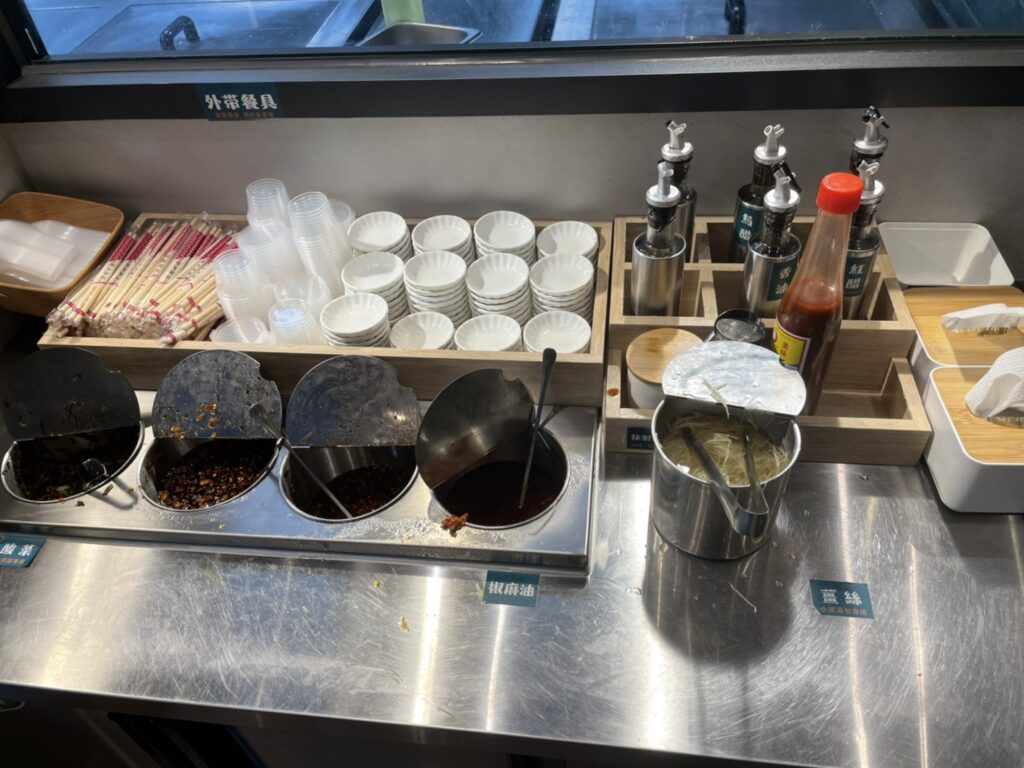 醬料和餐具都是採自助式,台面都很乾淨,醬料可以自行調配,也有直接調配好的可以取用。