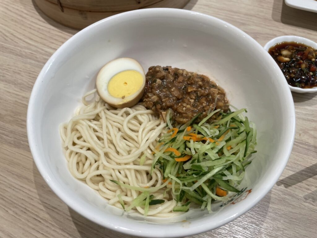 炸醬麵的醬香且份量蠻多,附黃瓜蘿蔔絲及半顆魯蛋,麵煮的軟硬剛好,建議上桌就先攪拌以免麵糊掉。