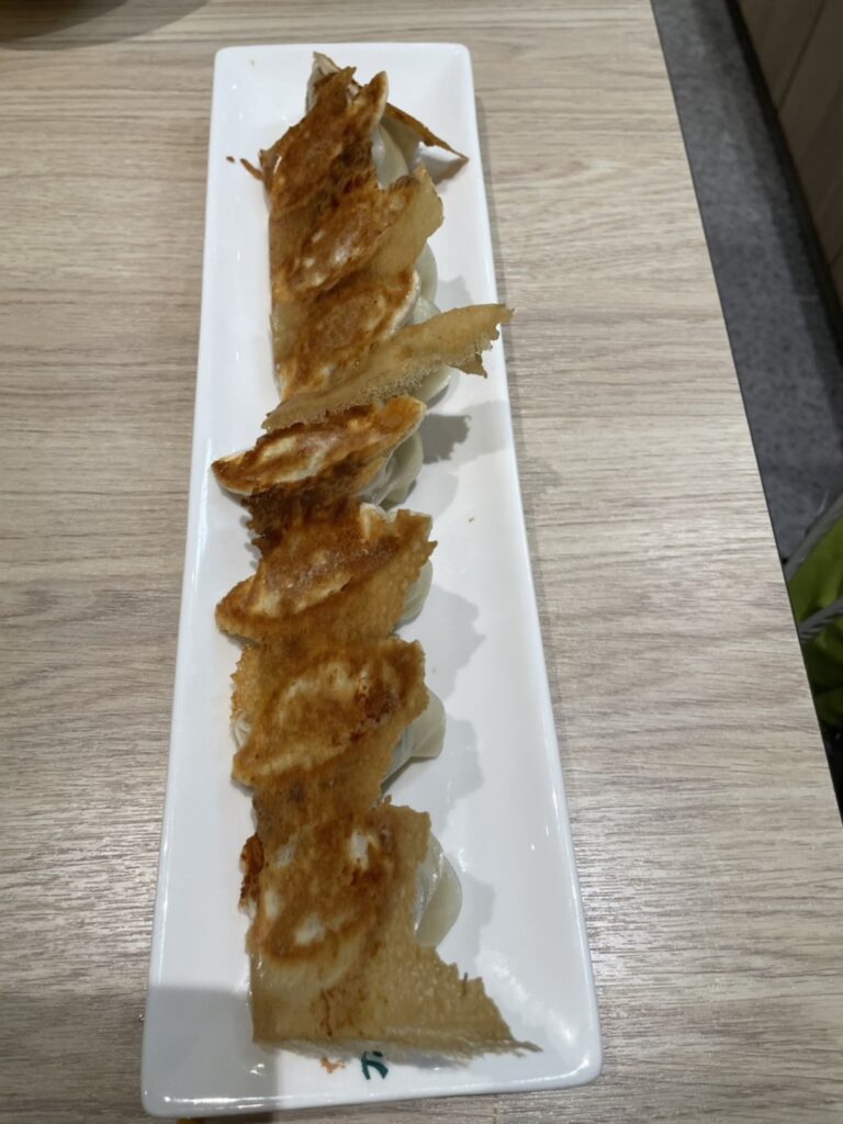 重頭戲來了,高麗菜鮮怪肉煎餃,怪不得叫流心,ㄧ咬下口湯汁馬上噴出,底層薄薄的麵粉皮很像脆餅,內餡很飽滿已有調味,其實不用沾醬,單吃也很夠味。